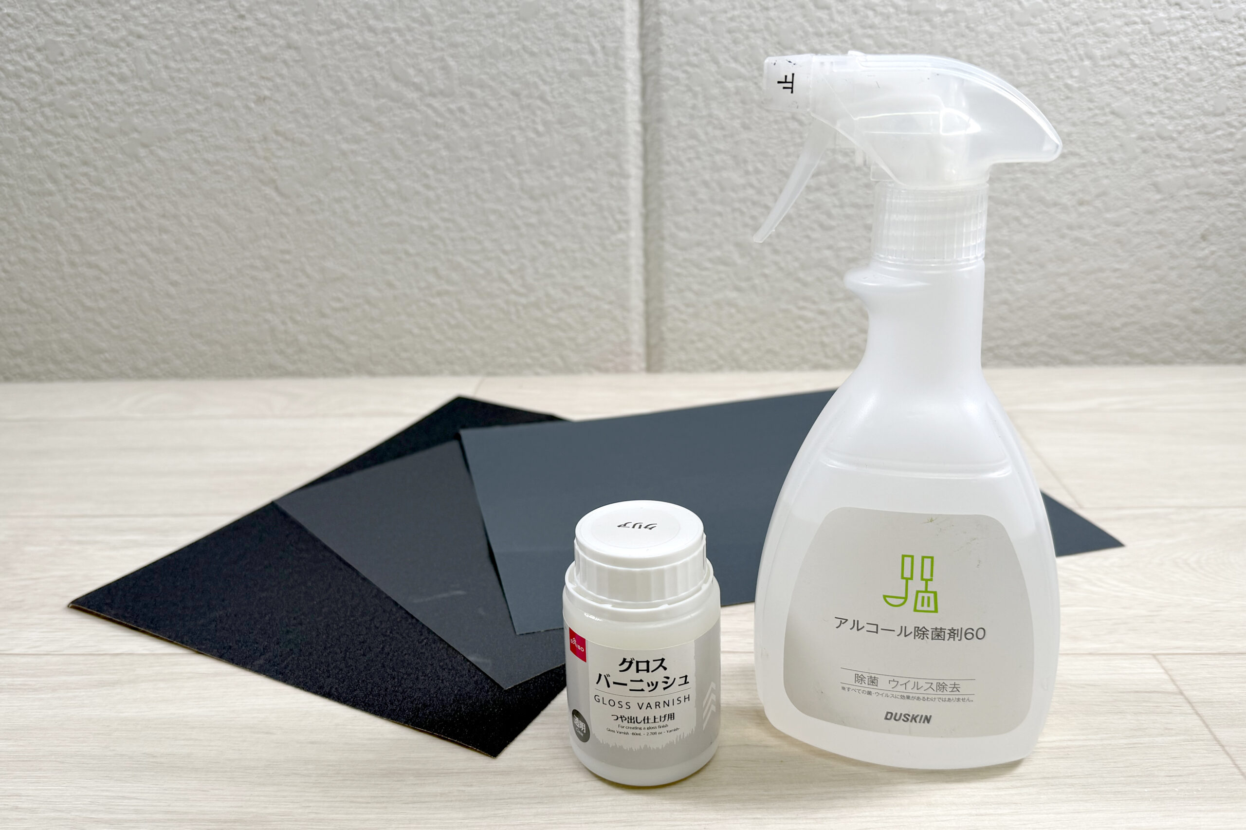 完成後にダイソーでも売っている「つや出しニス」や、靴用の防水スプレーをかけることで、摩擦や水濡れから表面を保護できます。