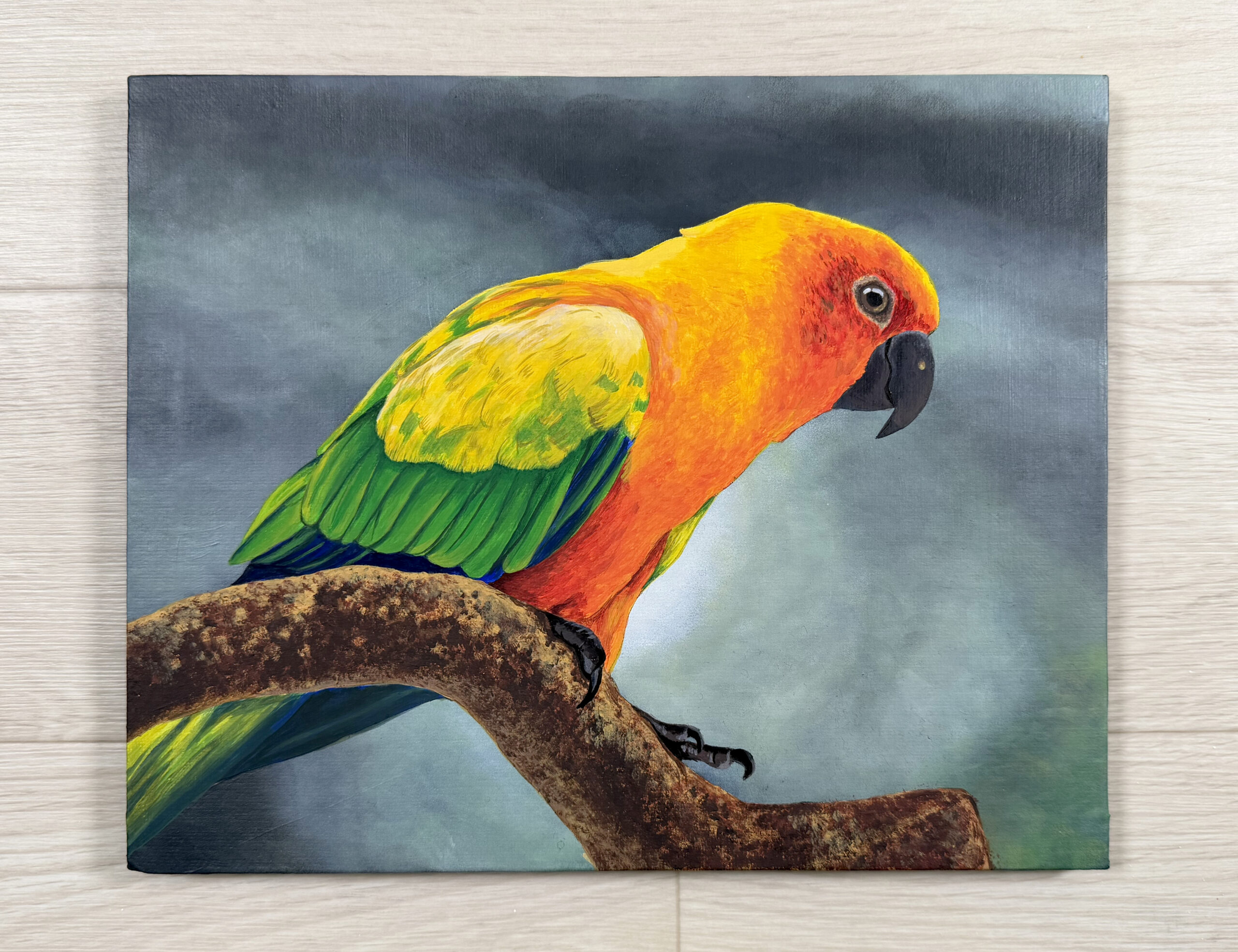 3. 背景が完成したらインコを塗っていきます。