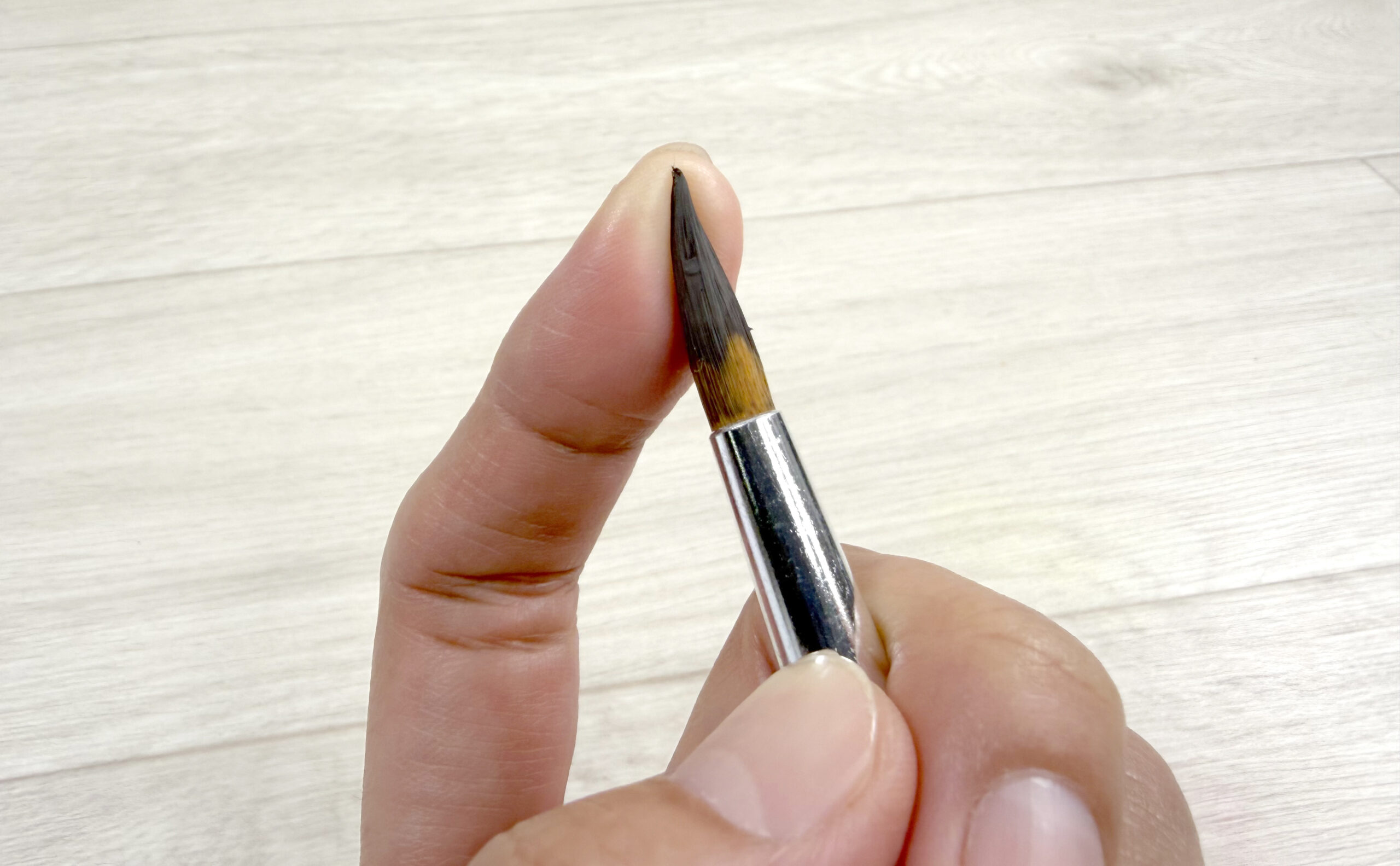 道具の放置は厳禁! 使い終わった筆を放置すると、二度と使えなくなります。作業中も、使っていない筆は必ず水に浸けておく習慣をつけましょう。