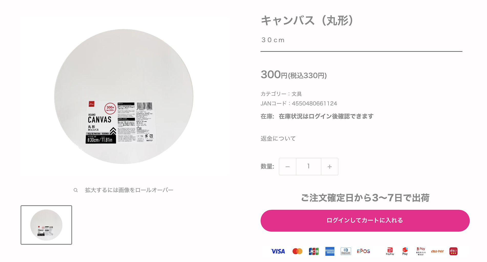 オンラインショップにはキャンバス(丸型)30cm 300円(税別)も販売されていました。