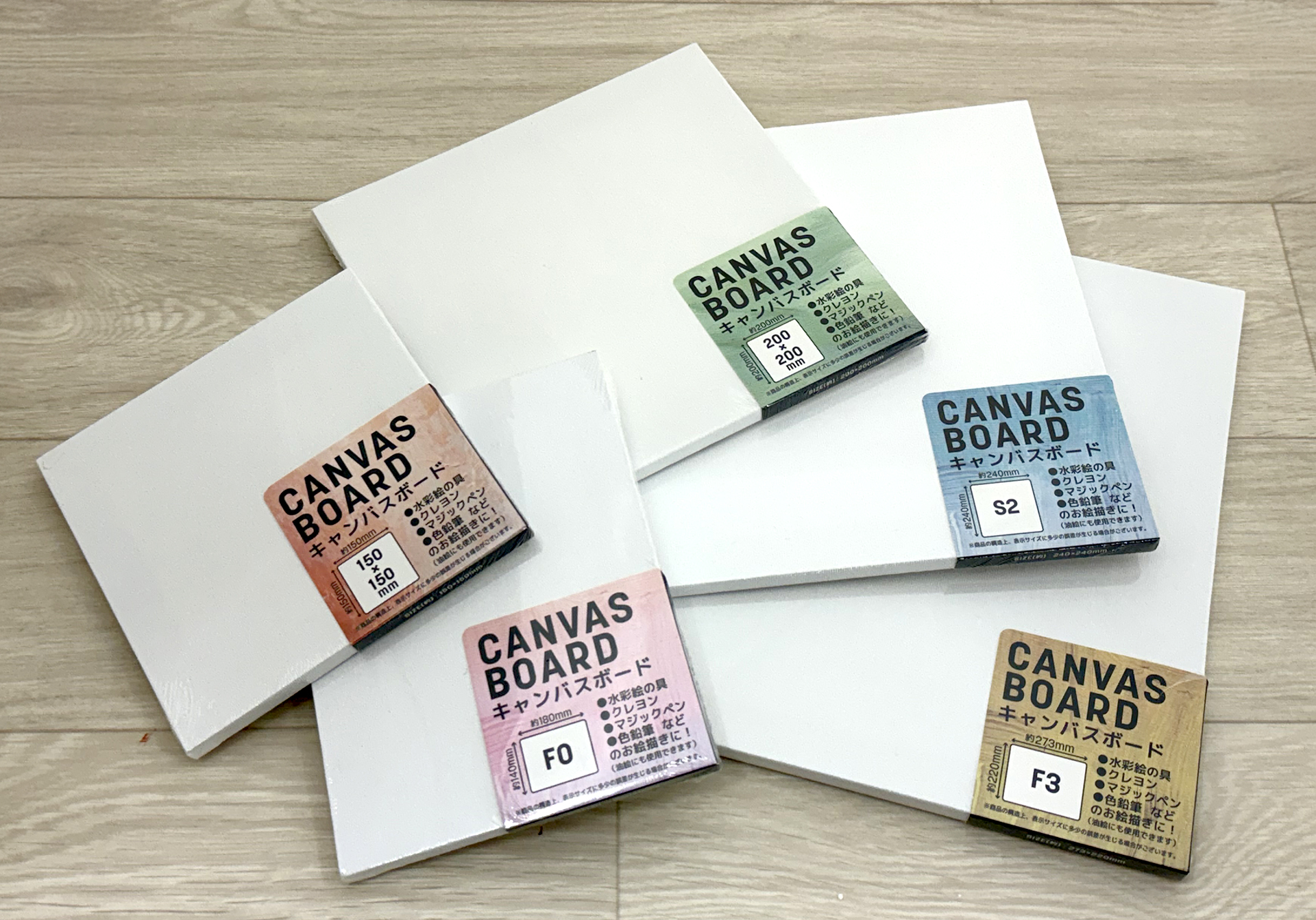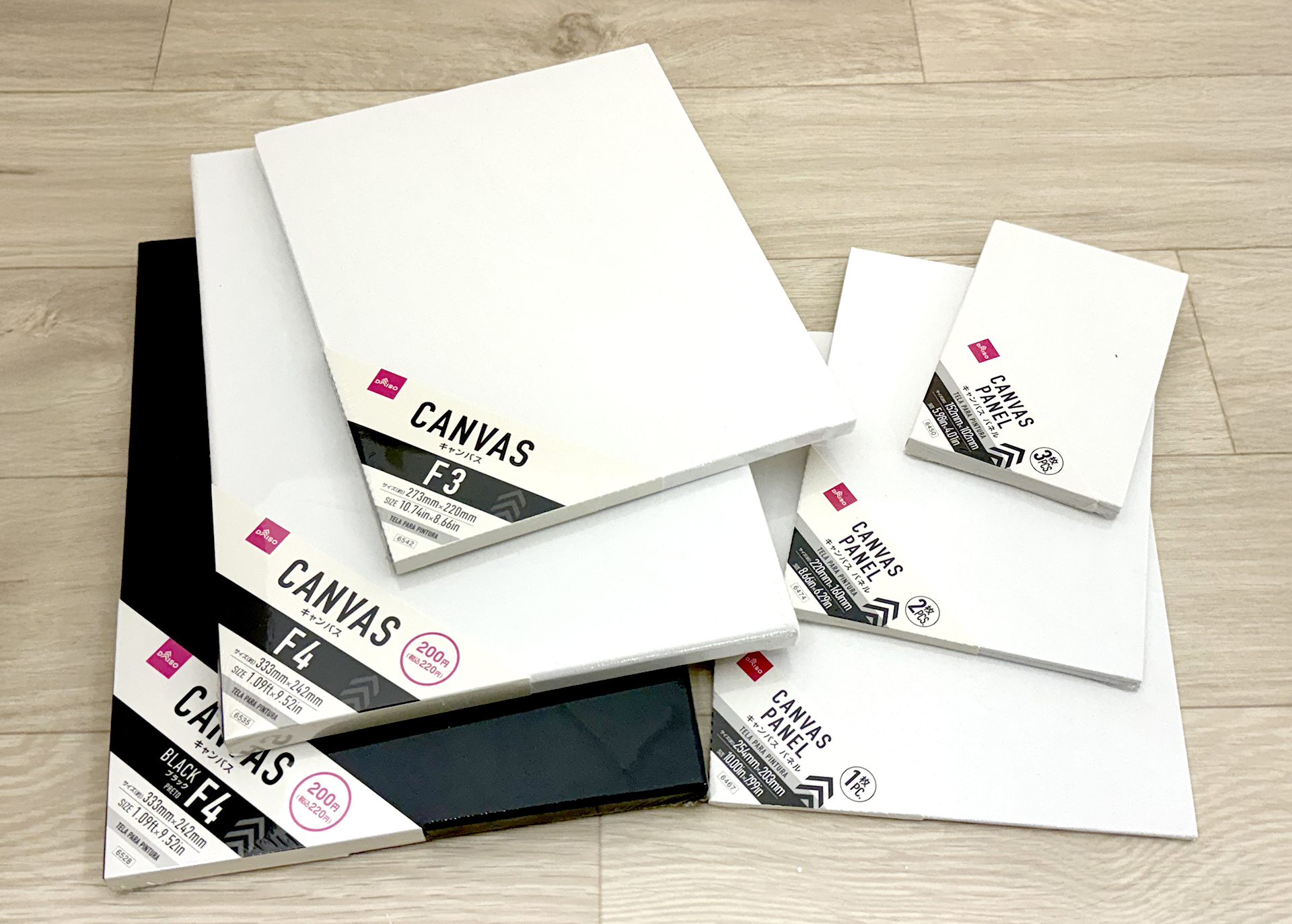 サイズはF4以下程度のラインナップですので大きいキャンバスは画材店などで購入しましょう。