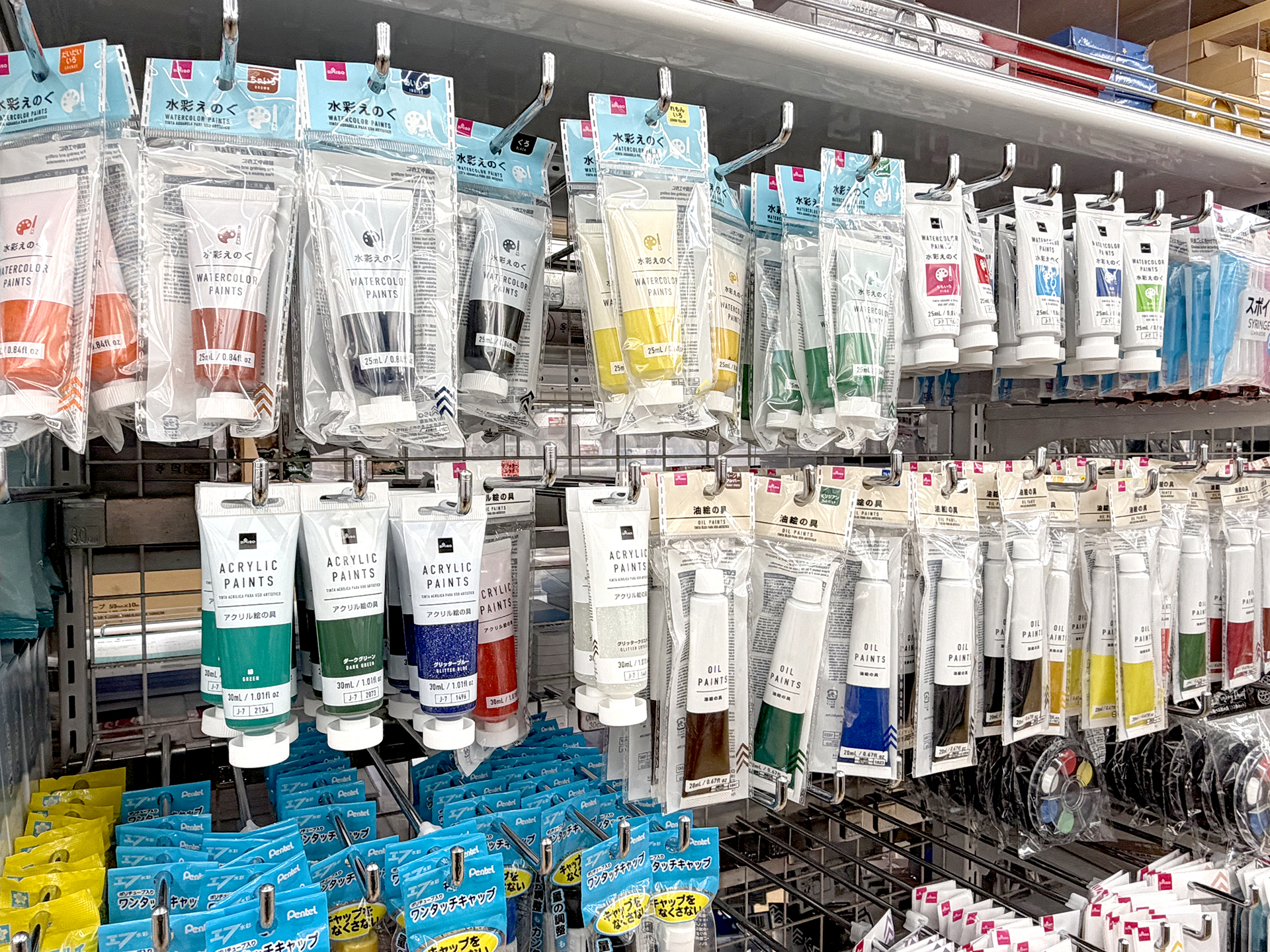 水彩絵の具、アクリル絵の具はもちろん、油絵の具まで売っています。