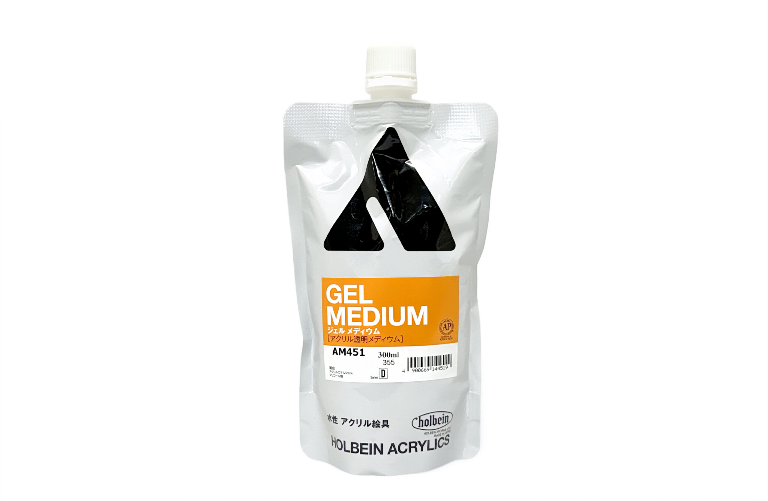 ジェルメディウムは白いジェル状ですが、乾くと透明になって接着力が増します。