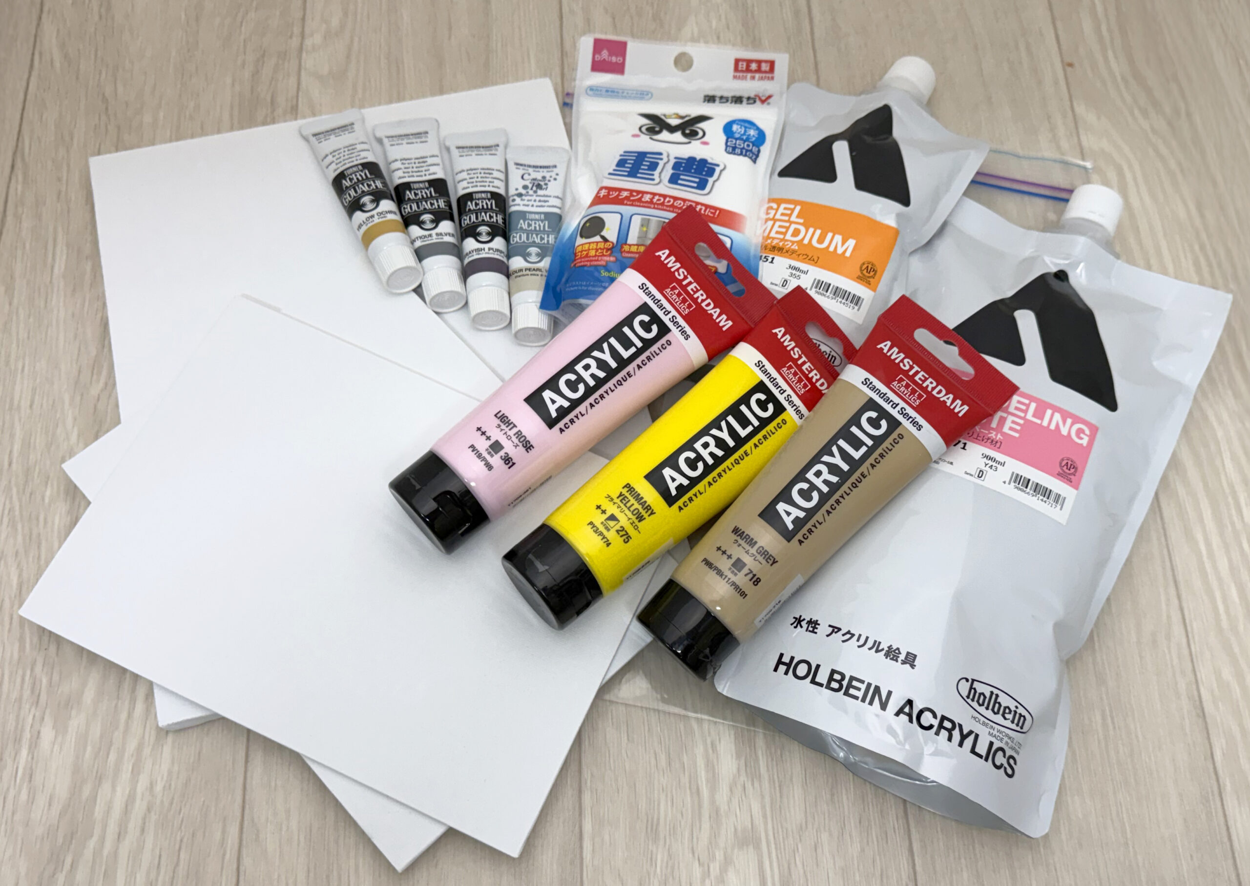 アクリル絵の具がおすすめではありますが、アクリルガッシュでもやってみましょう!