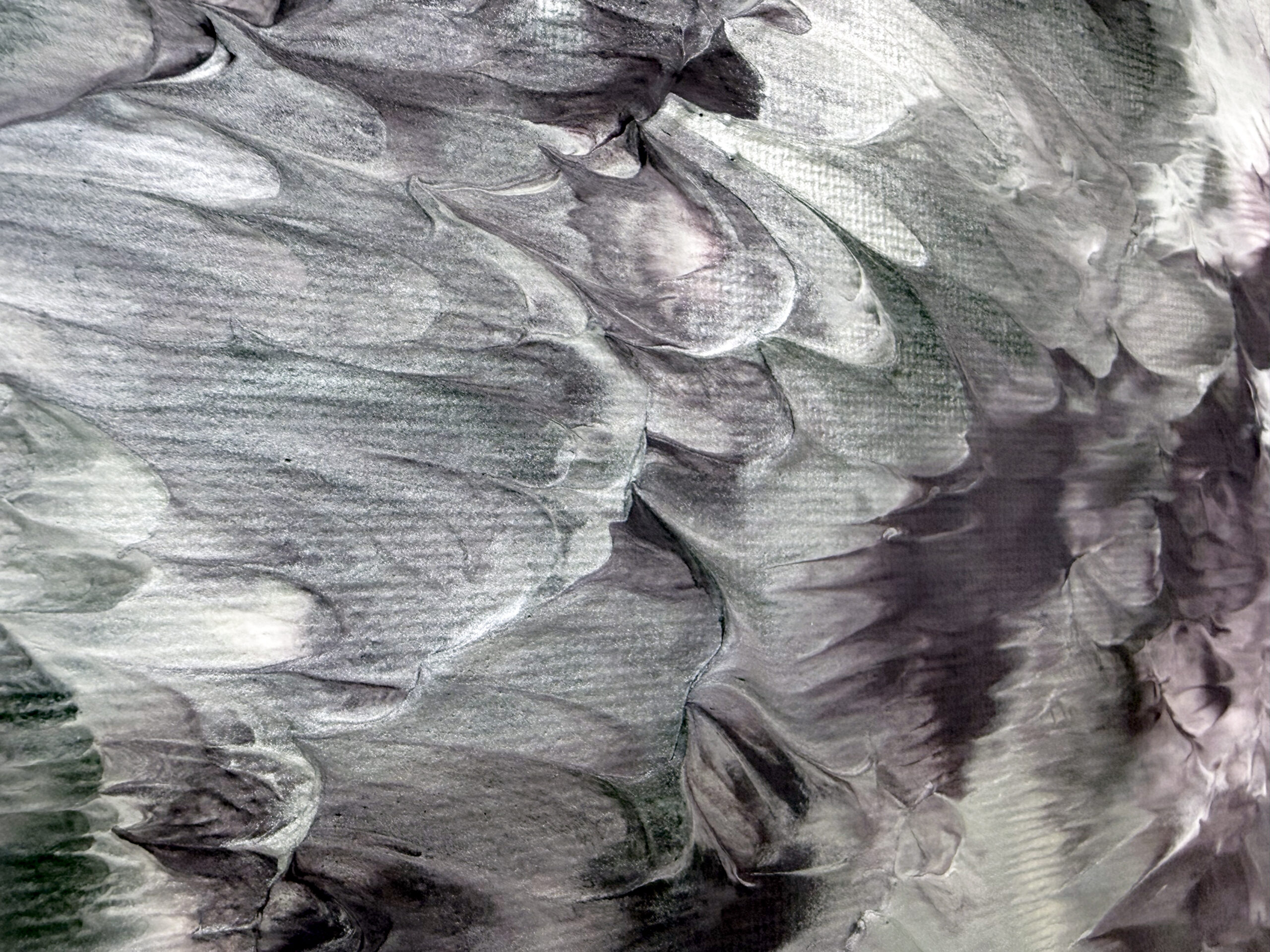 アクリル絵の具のみの仕上がりと比べるとマチエールが強調されてはっきりと出ていることがわかります。