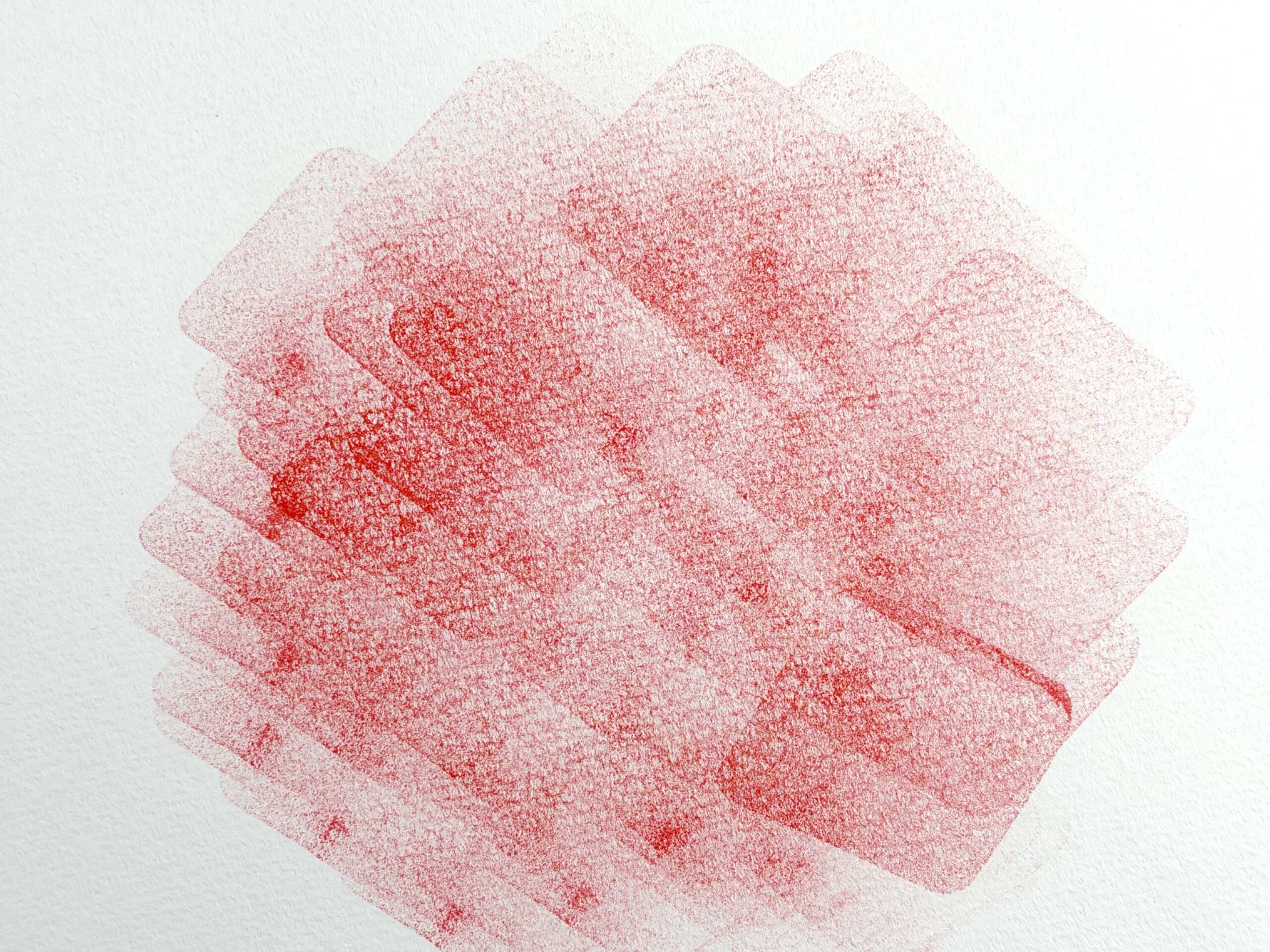 新聞写真やデジタル画像が小さな点の集まりで色を表現しているのと同様、スポンジの跡が細かく重なることで滑らかな階調が生まれます。