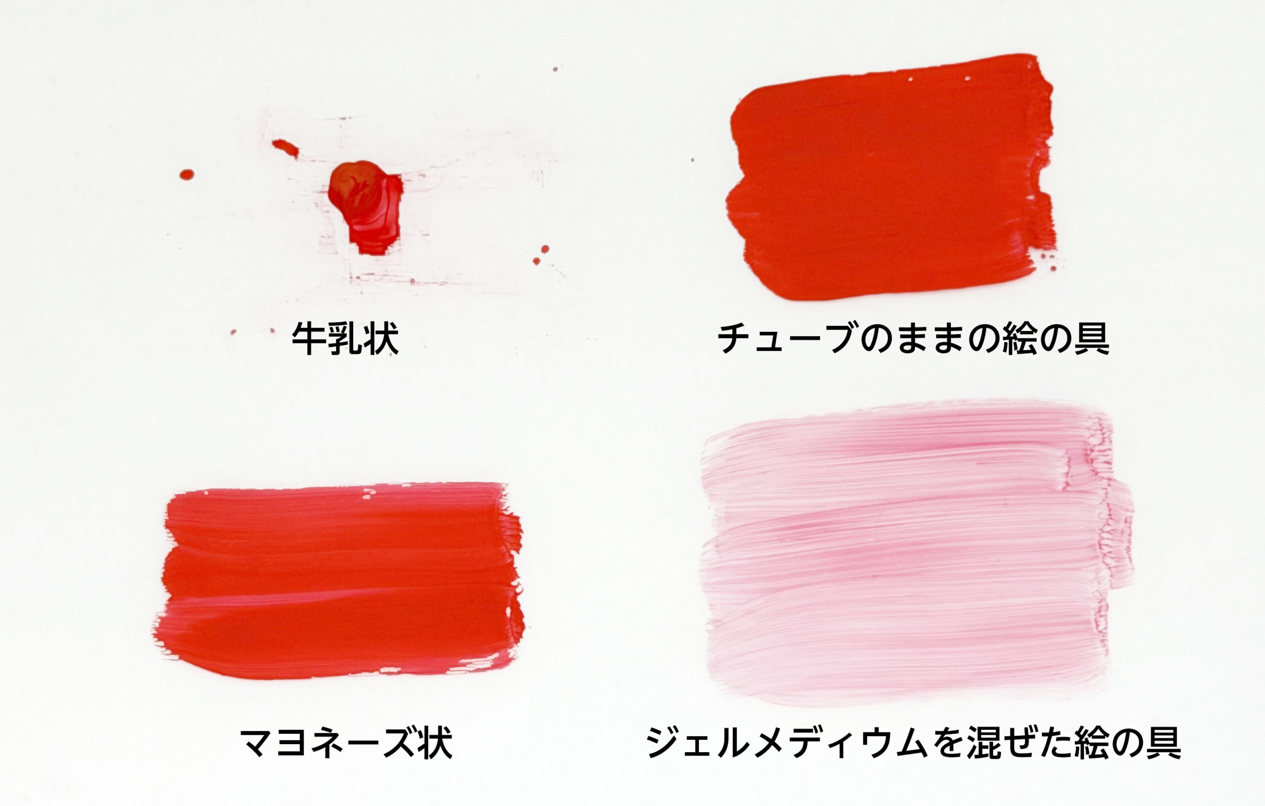 まずは「マヨネーズ状」を基準にし、表現したい質感に合わせて少しずつ水を足したり引いたりして、自分なりの黄金比を見つけてみてください。